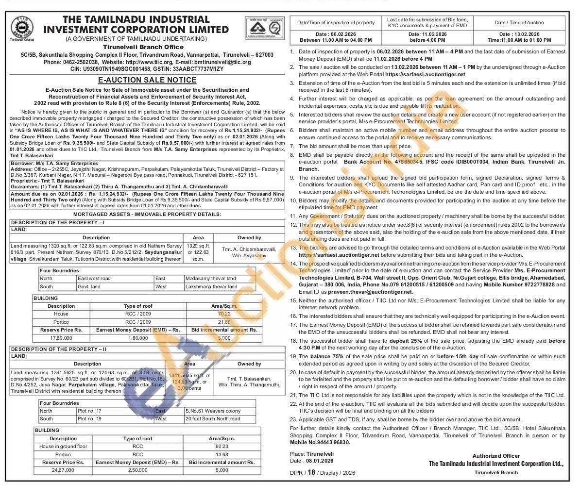 Land measuring 1320 sq.ft. or 122.63 sq.m. comprised in old Natham Survey 816/3 part, Present Natham Survey 870/13, D.No.5/212/2, Seydunganallur village, Srivaikundam Taluk, Tuticorin District with residential building thereon