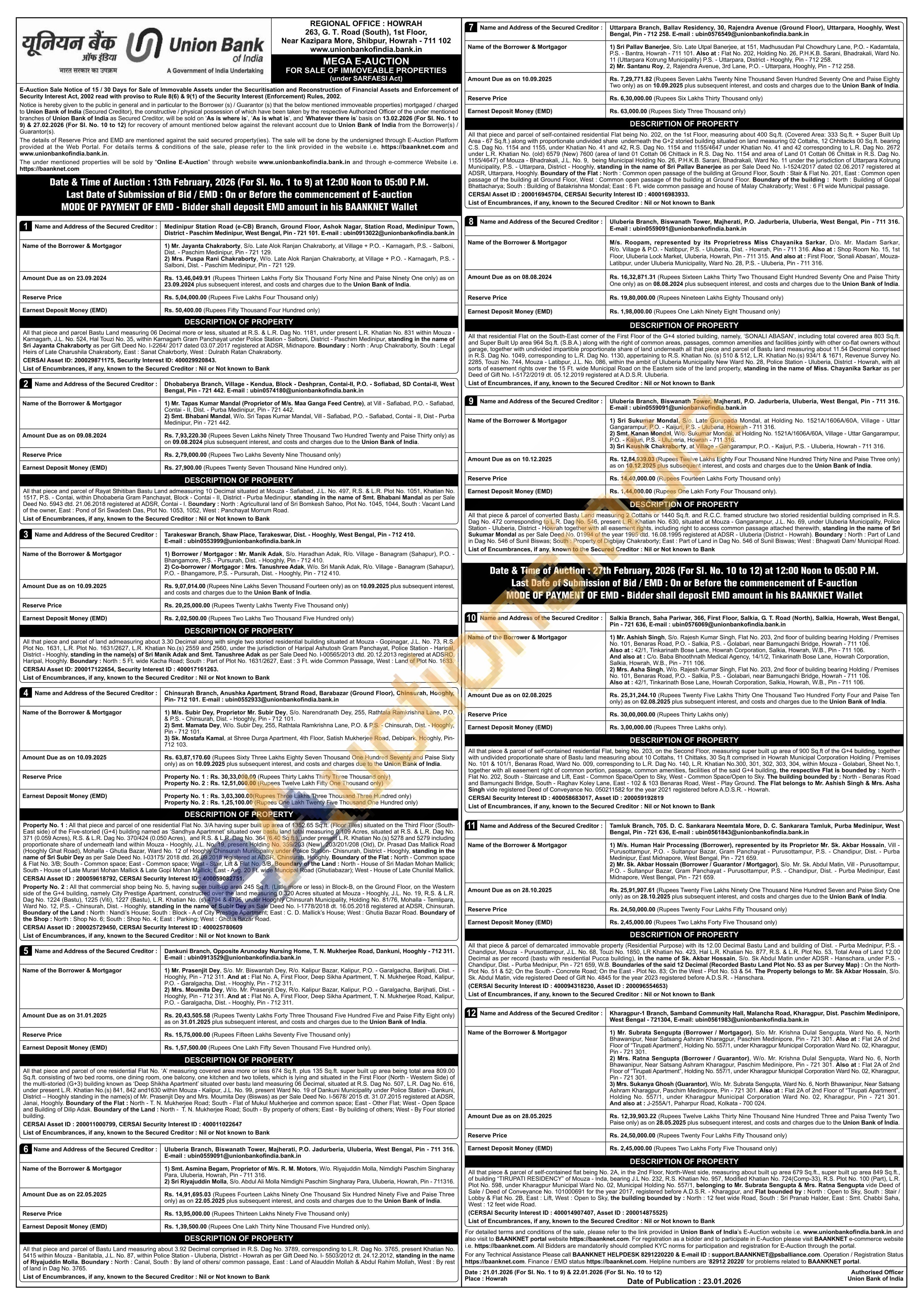 All that piece & parcel of self-contained residential Flat, being No. 203, on the Second Floor, measuring super built up area of 900 Sq.ft of the G+4 building, together with undivided proportionate share of Bastu land measuring about 10 Cottahs, 11 Chittaks. 30 Sq.ft comprised in Howrah Municipal Corporation Holding/Premises No. 101 & 101/1, Benaras Road, Ward No. 009, corresponding to L.R. Dag No. 140, L.R. Khatian No.300, 301, 302, 303, 304, within Mouza Golabari, Sheet No.1, together with all easement right of common portion, passage, common amenities, facilities of the said G+4 building, the respective Flat is bounded by: North Flat No. 202, South Staircase and Lift, East-Common Space/Open to Sky, West-Common Space/Open to Sky. The building bounded by: North-Benaras Road and Bamungachi Bridge, South-Raghav Koley Lane, East-102 & 103 Benaras Road, West-Play Ground. The Flat belongs to Mr. Ashish Singh & Mrs. Asha Singh vide registered Deed of Conveyance No. 050211582 for the year 2021 registered before A.D.S.R. - Howrah. CERSAI Security Interest ID: 400058683017, Asset ID: 200059192819 List of Encumbrances, if any, known to the Secured Creditor: Nil or Not known to Bank