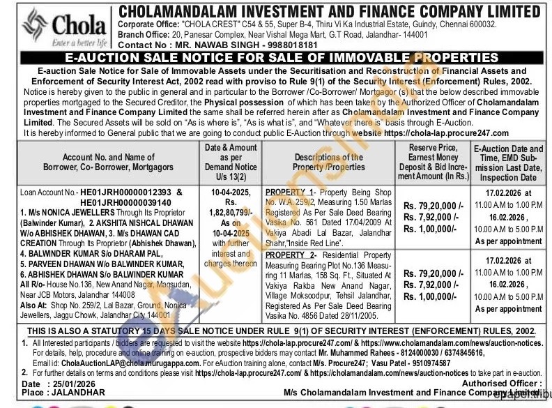 PROPERTY 1- Property Being Shop No. W.A. 259/2, Measuring 1.50 Marias Registered As Per Sale Deed Bearing Vasika No. 561 Dated 17/04/2009 At Vakiya Abadi Lal Bazar, Jalandhar Shahr, "Inside Red Line"
