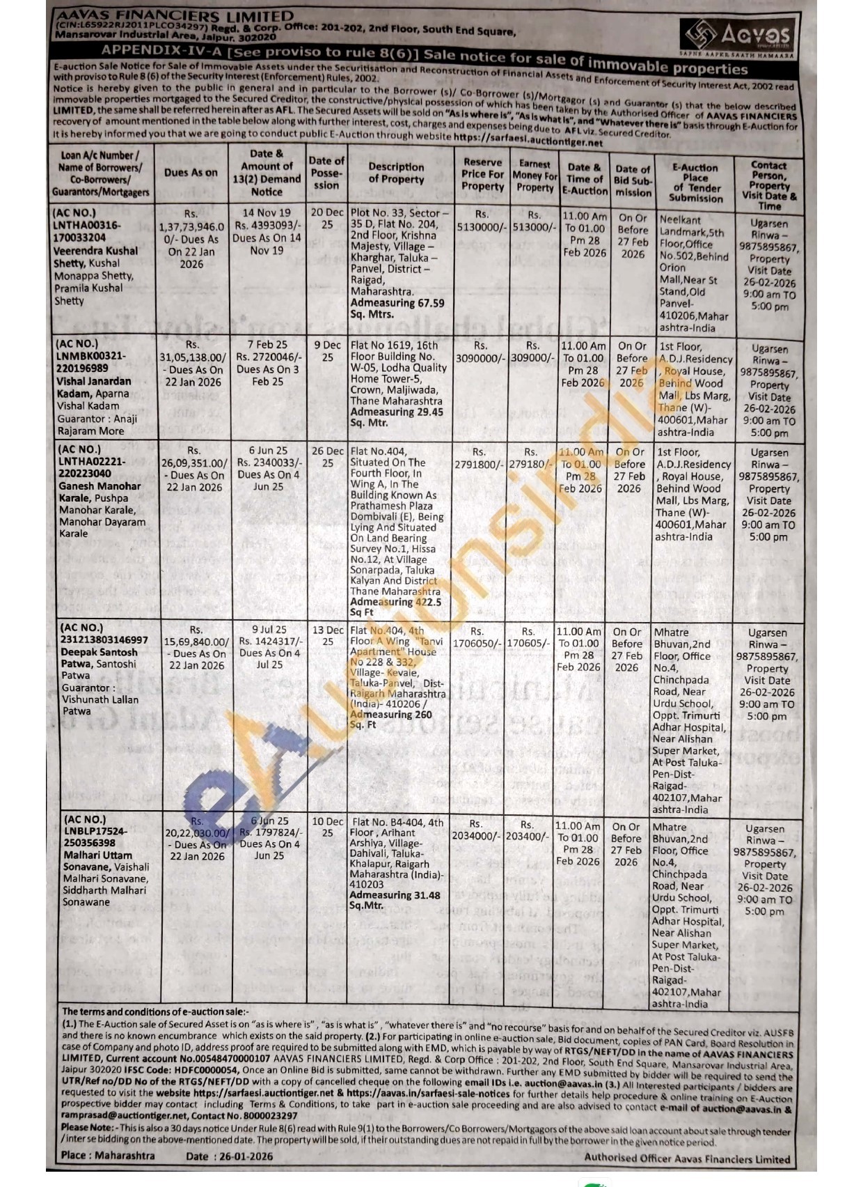 Flat No. 84-404, 4th Floor, Arihant Arshiya, Village-Dahivali, Taluka-Khalapur, Raigarh Maharashtra (India)-410203 Admeasuring 31.48 Sq.Mtr