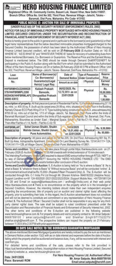 Description of property: All piece and parcel of Flat No.205, On 2nd Floor, Admeasuring 661 Sq. FL Built Up Area, Indraprastha Apartment, Constructed On Land Bearing Survey No. 131A1/A1/11+124, 131A1/A1/11+128, at Vilage-Daund, Taluka and Dist-Pune, Maharashtra-413801