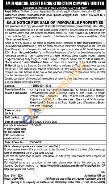 All That Piece And Parcel Of Khasra No. 782, Rakba 5.5523 Hectare, Admeasuring 01 Bigha 06 Bishwa, Naiyo Ki Dhani, Gram- Tej Nagar. Patwar Area - Lohawat J.B., Teh. Lohawat, Dist. Jodhpur, Jodhpur, Rajasthan- 342302, And Bounded As: East Land Of Rawalram, West- Land Of Bhomaram & Road, North- Land Of Aaduram, South-Paburam Choudhary