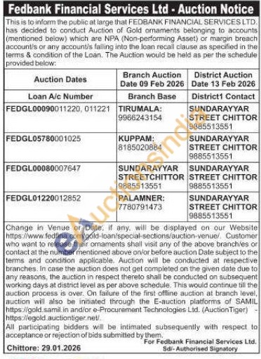 Fedbank Financial Services Ltd Gold Auctions Auction in Chittoor