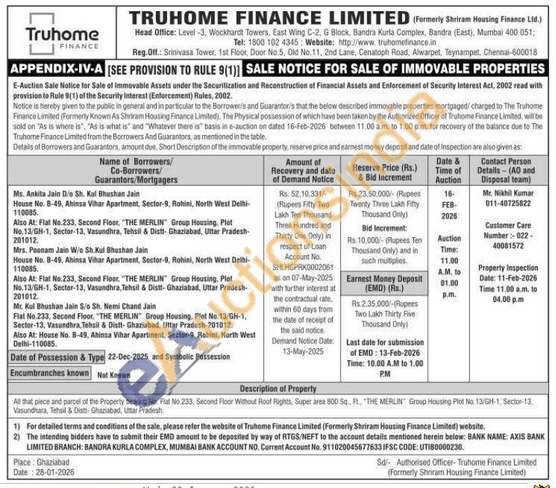 All that piece and parcel of the Property bearing No. Flat No.233, Second Floor Without Roof Rights, Super area 800 Sq. Ft., "THE MERLIN Group Housing Plot No.13/GH-1, Sector-13, Vasundhara, Tehsil & Distt- Ghaziabad, Uttar Pradesh