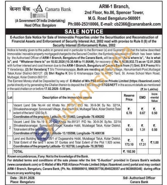 Vacant Land Site No.44 old Khata No. 9913/1, PID No. 30-9-3K Sy No. 32/1A. Shivakeshavanagar, Sonnavadi Village, Kasaba Hobli, Mulbagal Taluk, Kolar District. Total extent of the land 1200 Sq