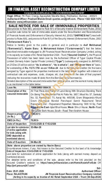 All That Piece And Parcel Of Land Along With Structure Standing There On Being The Residental Piot At Patta No. 3857. Misal No. 57, Sankalp No. 02. Receipt No. 75. Aaraji No. 445/386, Gram Bhagwanda Khurd Gram Panchayat Mundol Panchayat Samill Rajsamand Tehsil Rajsamand Dist-Rajsamand Rajasthan Measuring 1400.14 Sq. Feet Bounded As East-Iqbal Bhai House, West- Shiv Ji House, North-Road Then Zakir Bahi House South-Road Then Ibrahim House