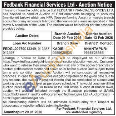 Fedbank Financial Services Ltd Gold Auctions Auction in Anantapur