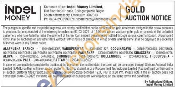 Indel money ltd Gold Auctions Auction in Alappuzha