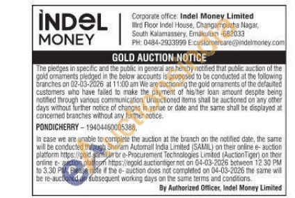 Indel money ltd Gold Auctions Auction in Ernakulam