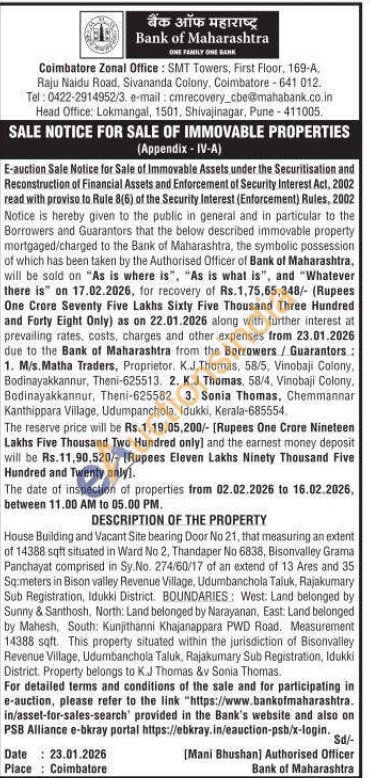 Contact number : 0422-2914952/3. e-mail: cmrecovery_cbe@mahabank.co.in