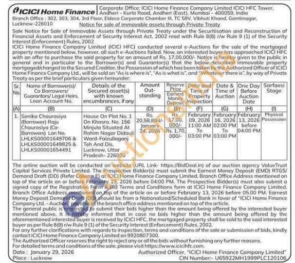 House On Plot No. 1 On Khasra. No. 156 Minjula Situated At Rahim Nagar Didauli Ward-Faizullaganj Teh And Dis. Lucknow, Uttar Pradesh-226020