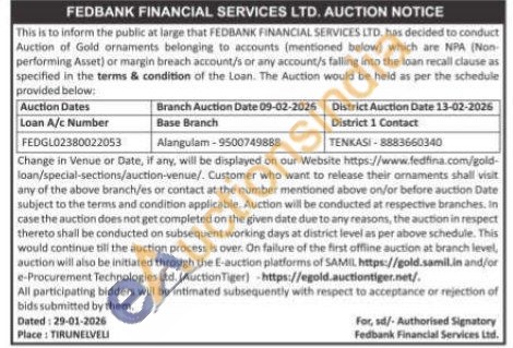 Fedbank Financial Services Ltd Gold Auctions Auction in Tirunelveli