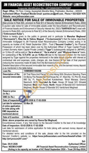 All That Piece And Parcel Of Land Along With Shudure Standing Them On Being The Residential Plet House No. 37. Ward No. 15. Phyn 55, Anse 880 Sq. Fl. Nagar Parishad Kukdeshwar Tehsil Manasa District Neemuch (MP) Bounded As East House Of Gopal SO G Meghwal, West-Aam Rasta, North House Of Bamsilal SO Vardichand Meghwal, South House Of Bansa S/O Verdichand Meghwal