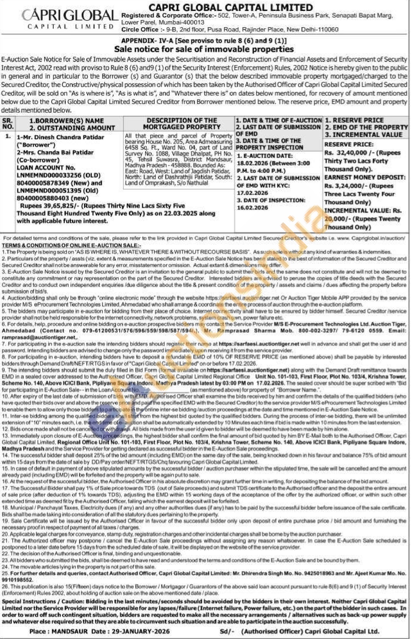 All that piece and parcel of Property bearing House No. 205, Area Admeasuring 6458 Sq. Ft., Ward No. 04, part of Land aur, Survey No. 1088, Village Dhalpat, PH NO. 45, Tehsil Suwasra, District Mandsaur, Madhya Pradesh-458888 adesh-458888. Bounded As: East: Road, West: Land of Jagdish Patidar, North: Land of Dashrathiii Patidar, South: Land of Omprakash, 5/o Nathulal