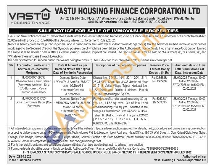 Khasra No. 32/18, 19/1, 22/1, 20/1, 21/1, 23,34,//3/1, Khata No. 34/36 Jambandi Year 2017-18 Vakia Village Tajpur Hadbast No. 182 Tehsil and District Ludhiana, Punjab 141004, measuring 53 Sq. Yds