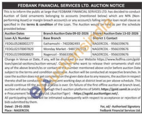 Fedbank Financial Services Ltd Gold Auctions Auction in Chennai