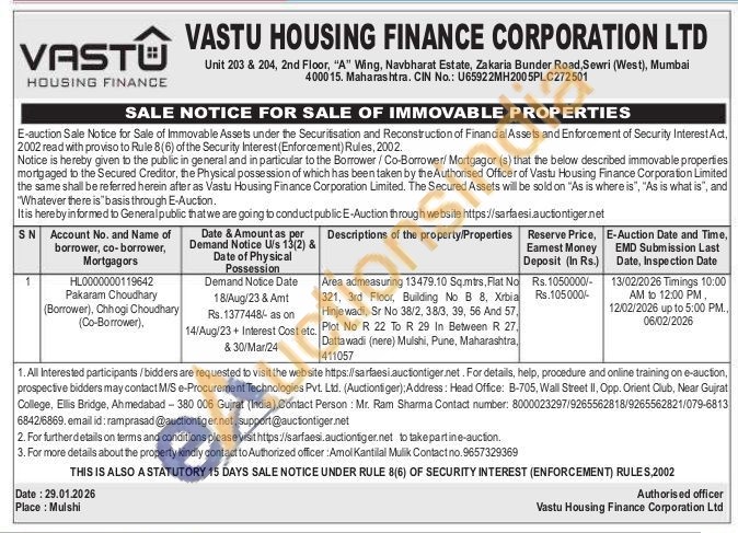 Area admeasuring 13479.10 Sq.mtrs, Flat No 321, 3rd Floor, Building No B 8. Xrbia Hinjewadi, Sr No 38/2, 38/3, 39, 56 And 57, Plot No R 22 To R 29 In Between R 27. Dattawadi (nere) Mulshi, Pune, Maharashtra, 411057