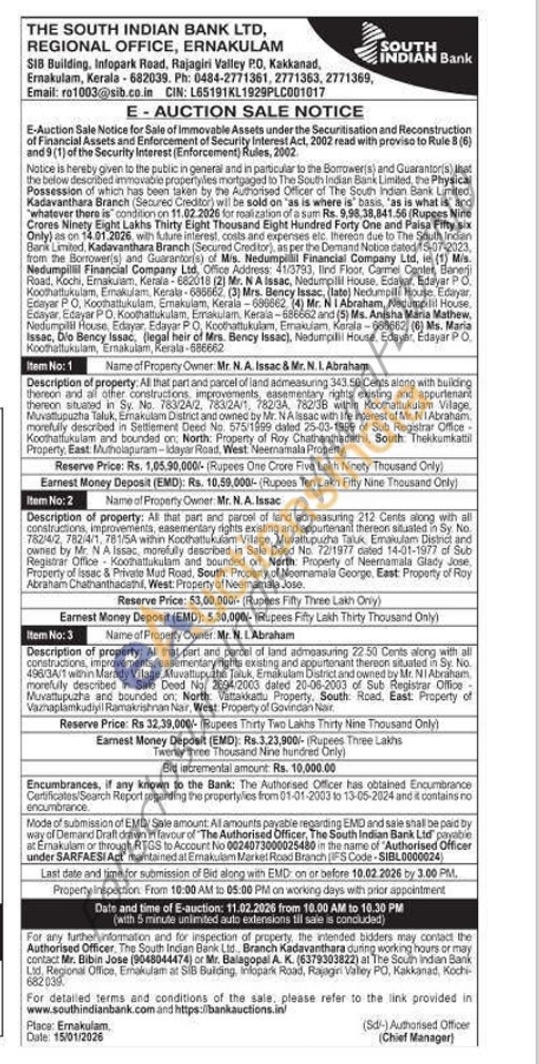 Contact The Authorized Officer: Mr. Bibin Jose 9048044474, Mr. Balagopal A. K. 6379303822