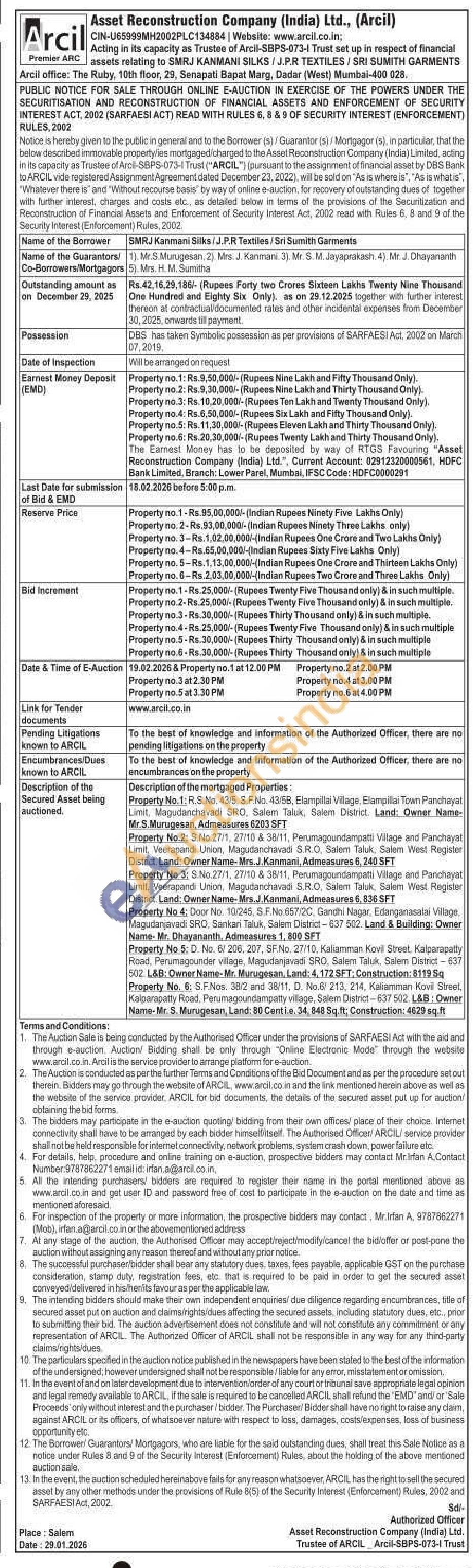S.F.Nos. 38/2 and 38/11, D. No.6/ 213, 214, Kaliamman Kovil Street, Kalparapatty Road, Perumagoundampatty village, Salem District-637502, L&B: Owner Name-Mr. S. Murugesan, Land: 80 Cent i.e. 34, 848 Sq.ft; Construction: 4629 sq.ft
