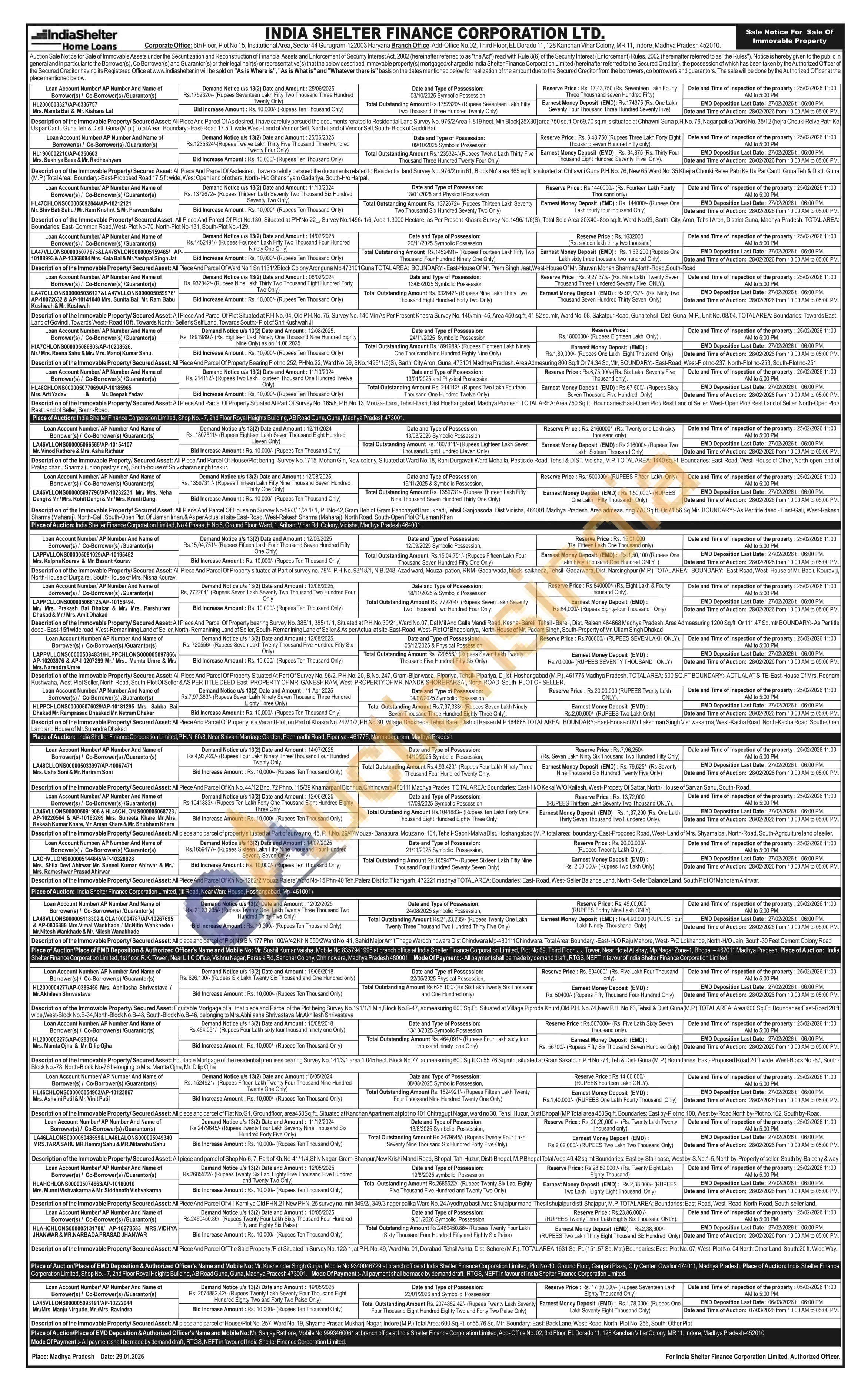 Description of the Immovable Property/Secured Asset: All Piece And Parcel Of The Said Property/Plot Situated in Survey No. 122/1, at P.H. No. 49, Ward No. 01, Dorabad, Tehsil Ashta, Dist. Sehore (M.P.). TOTAL AREA: 1631 Sq. Ft. (151.57 Sq. Mtr.) Boundaries: East: Plot No. 07, West: Plot No. 04 North: Other Land, South: 20 ft. Wide Way.