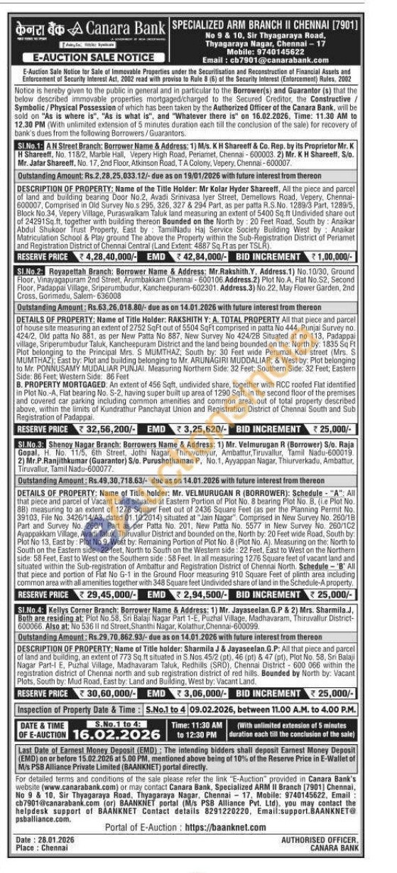 3) All that piece and parcel of Vacant Land situated at Eastern Portion of Plot No. 8 bearing Plot No. B. (Le Plot No. 88) measuring to an extent of 1276 Square Feet out of 2436 Square Feet (as per the Planning Permit No. 39103, File No. 3426/14/A3, dated 01.10.2014) situated at "Jain Nagar Comprised in New Survey No. 260/18 Part and Survey No. 260/1 Part a Part as per Patta No. 201, New Patta No. 5577 in in New Survey No. 260/102 yuppakkam Village, Avadi Taluk, Thiruvallur District and bounded on the North by: 20 Feet wide Road, South by: Plot No 13. East by: Plot No 9, West by: Remaining Portion of Plot No. 8 (Plot No. A). Measuring on the: North to South on the Eastern side: 22 feet, North to South on the Western side: 22 Feet, East to West on the Northern side. 50 Feet, East to West on the Southern side: 58 Feet. In all measuring 12765quare feet of vacant land and situated within the Sub-registration of Ambattur and Registration District of Chennai North. Schedule - 'B' All that piece and portion of Flat No No G-1 G-1 in in the the Ground Ground Floor Floor measuring 910 Square Feet of plinth area including common area with all amenities together with 348 Square feet Undivided share of tand in the Schedule-A property