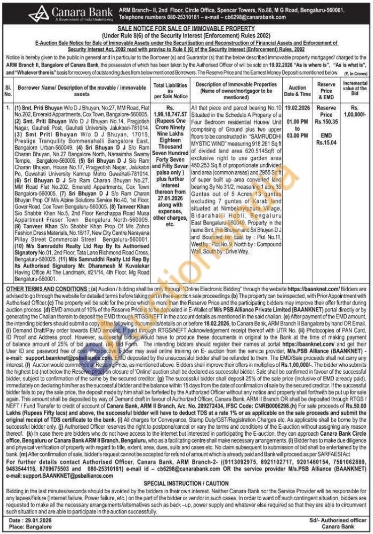 All that plece and parcel bearing No.10 Situated in the Schedule A Property of a Four Bedroom residential House/ Unit comprising of Ground plus two upper floors to be constructed in "SAMRUDDHI MYSTIC WIND" measuring 918.261 Sq ft of divided land area 620.5145qft of exclusive right to use garden area 450.253 Sq.ft of proportionate undivided land area (common areas) and 2955 Sq ft of super built up area converted land bearing Sy No 31/2, measuring 1 acre 35 Guntas out of 5 Acres 13 guntas excluding 7 guntas of Karab land situated at Nimbekayippura Village. Bidarahalli Hobli, Bengaluru East Bengaluru-560049. Property in the name Smt. Priti Bhuyan and Sri Bhuyan DJ and Bounded by: East by: Plot No.11, West by: Plot No. 9, North by: Compound Wall, South by: Drive Way
