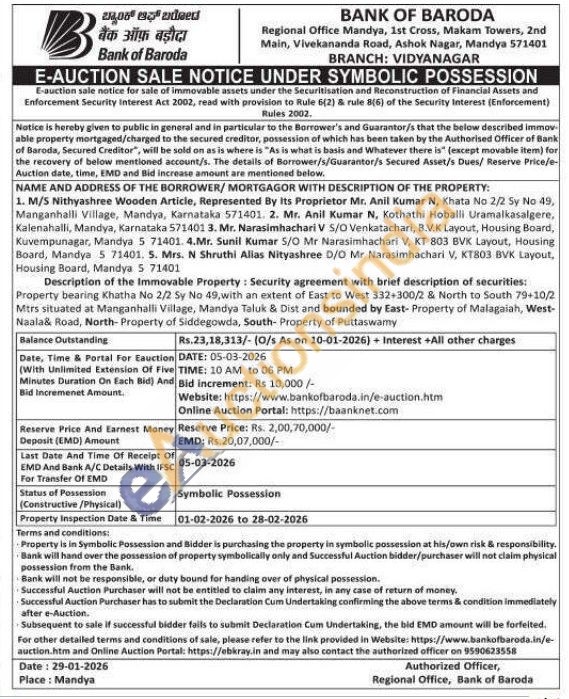 Property bearing Khatha No 2/2 Sy No 49, with an extent of East to West 332-300/2 & North to South 79+10/2 Mtrs situated at Manganhalli Village, Mandya Taluk & Dist and bounded by East-Property of Malagaiah, West-Naala& Road, North-Property of Siddegowda, South- Property of Puttaswamy