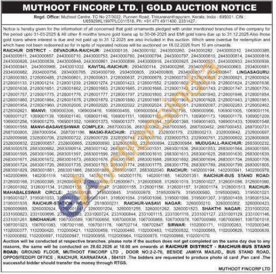 Muthoot Fincorp Ltd Gold Auctions Auction in Raichur