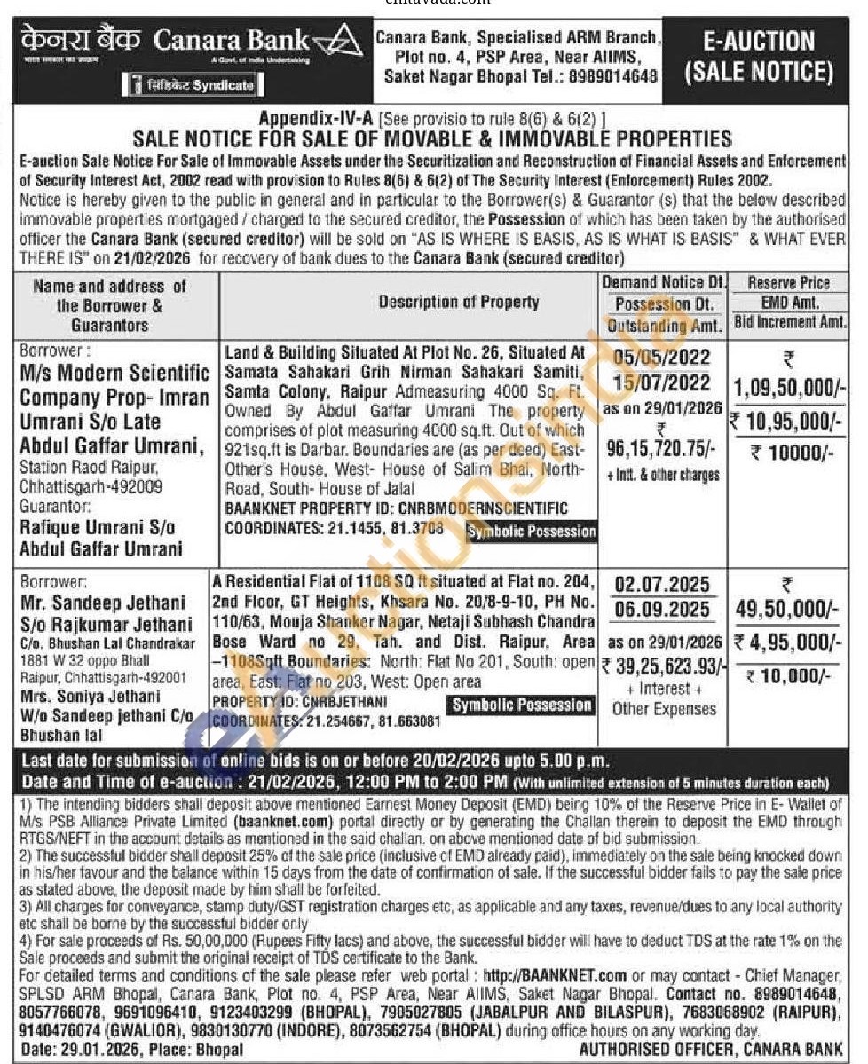 Land & Building Situated At Plot No. 26, Situated At Samata Sahakari Grih Nirman Sahakari Samiti, Samta Colony. Raipur Admeasuring 4000 Sq. FL. Owned By Abdul Gaffar Umrani The property comprises of plot measuring 4000 sq.ft. Out of which 921sq.ft is Darbar. Boundaries are (as per deed) East-Other's House, West House of Salim Bhai, North-Road, South- House of Jalal