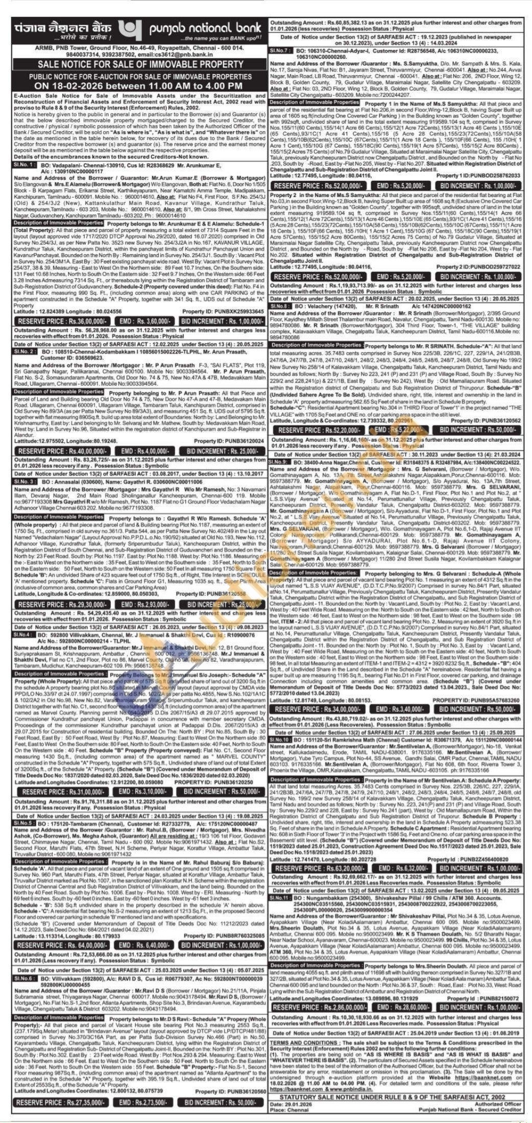 5) Schedule 'A', All that piece and parcel of vacant land of an extent of One ground and 1505 sq.ft comprised in Survey No. 960 Part, Maruthi Flats, 47th Street, Periyar Nagar, situated at Korattur Village, Ambattur Taluk, Tiruvallur District marked as Plot No. 1007, in the sanctioned plan Korattur N.H. Scheme within the registration District of Chennai Central and Sub Registration District of Vilivakkam, and the land being. Bounded on the North by 40 Feet Road. South by Plot No. 1006. East by Plot No. 1008 West by ERI. Measuring North by 69 feet 6 inches. South by-60 feet 0 inches. East by-60 feet 0 inches. West by-61 feet 3 inches. Schedule 'B': 538 Sq.ft undivided share in the property described in the schedule 'A' herein above. Schedule "C: A residential flat bearing No.8-2 measuring an extent of 1213 Sq. Ft, in the proposed Second Floor and covered car parking in schedule 'B' mentioned land and with specifications (Schedule "B") (Covered under Memorandum of Deposit of Title Deeds Doc No: 11212/2023 dated 14.12.2023, Sale Deed Doc No: 684/2021 dated 04.02.2021)