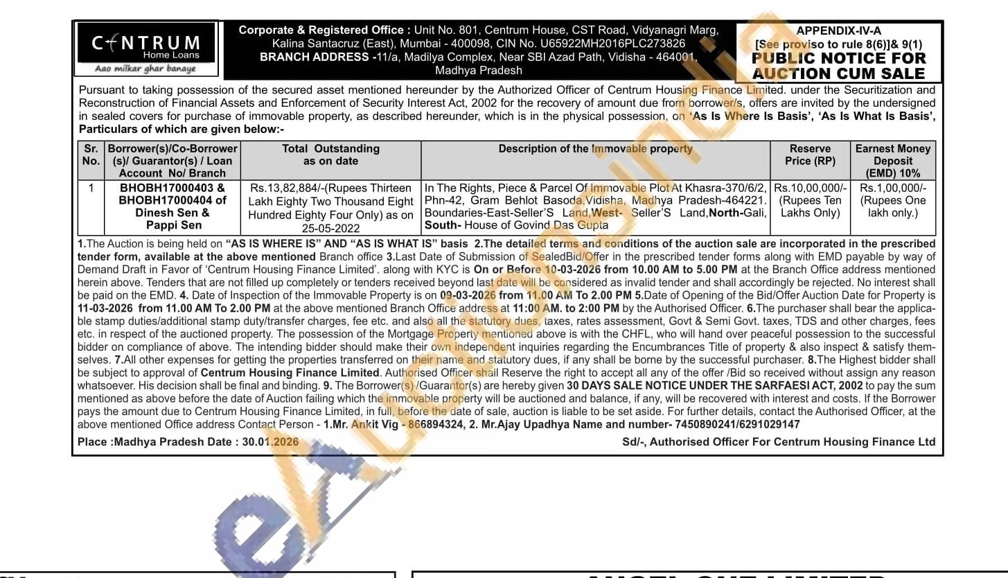 In The Rights, Piece & Parcel Of Immovable Plot At Khasra-370/6/2, Phn-42, Gram Behlot Basoda, Vidisha, Madhya Pradesh-464221. Boundaries-East-Seller'S Land, West Seller'S Land, North-Gali, South-House of Govind Das Gupta