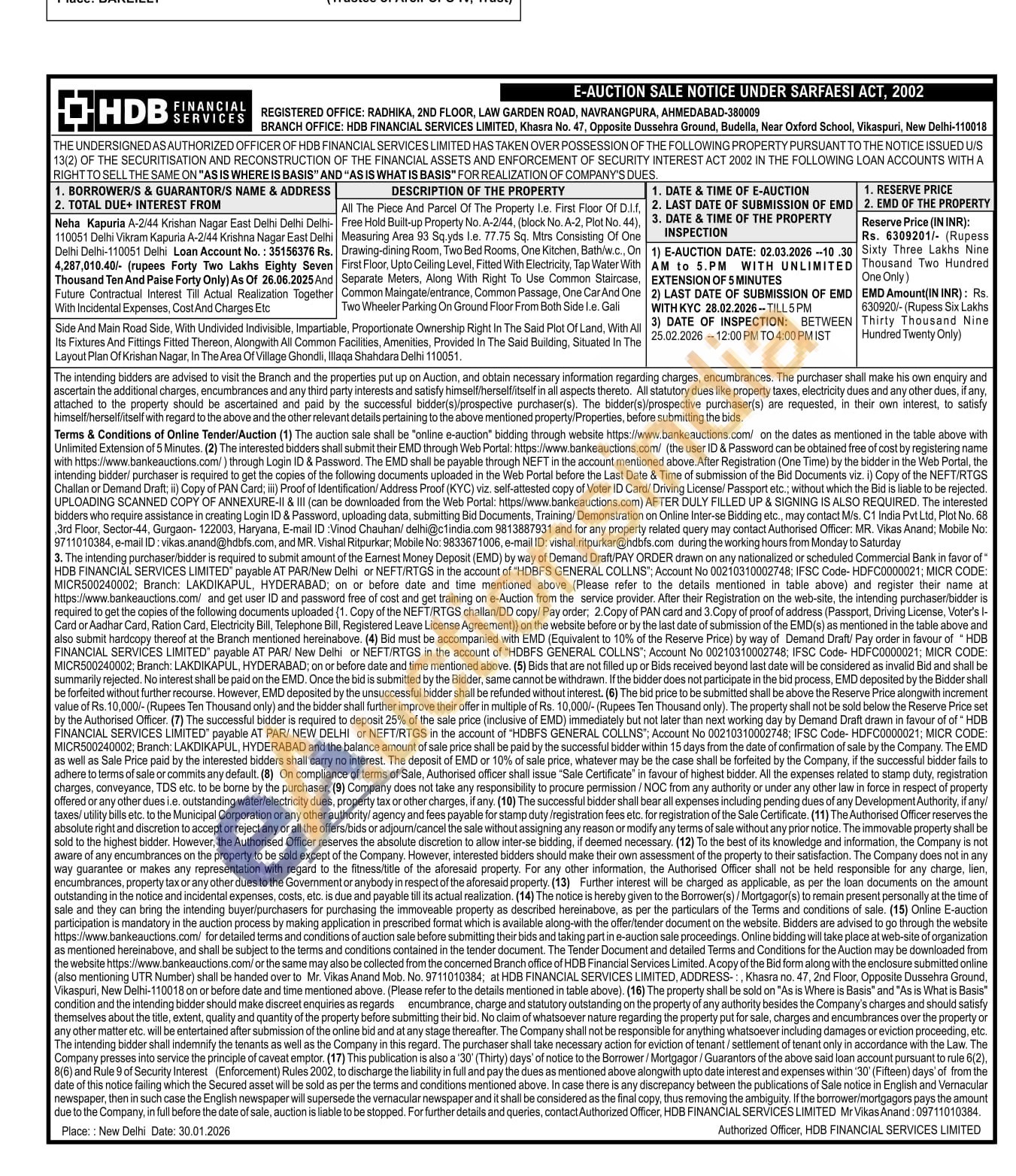 All The Piece And Parcel Of The Property I.e. First Floor Of D.l.f, Free Hold Built-up Property No. A-2/44, (block No. A-2, Plot No. 44), Measuring Area 93 Sq.yds l.e. 77.75 Sq. Mtrs Consisting Of One Drawing-dining Room, Two Bed Rooms, One Kitchen, Bath/w.c., On First Floor, Upto Ceiling Level, Fitted With Electricity, Tap Water With Separate Meters, Along With Right To Use Common Staircase, Common Maingate/entrance, Common Passage, One CarAnd One Two Wheeler Parking On Ground Floor From Both Side l.e. Gali Side And Main Road Side, With Undivided Indivisible, Impartiable, Proportionate Ownership Right In The Said Plot Of Land, With All Its Fixtures And Fittings Fitted Thereon, Alongwith All Common Facilities, Amenities, Provided In The Said Building, Situated In The Layout Plan Of Krishan Nagar, In The Area Of Village Ghondli, Illaqa Shahdara Delhi 110051.