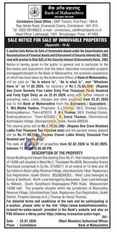 House Building and Vacant Site bearing Door No 21, that measuring an extent of 14388 sqft situated in Ward No 2, Thandaper No 6838, Bisonvalley Grama Panchayat comprised in Sy.No. 274/60/17 of an extend of 13 Ares and 35 Sq:meters in Bison valley Revenue Village, Udumbanchola Taluk, Rajakumary Sub Registration, Idukki District. BOUNDARIES: West: Land belonged by Sunny & Santhosh, North: Land belonged by Narayanan, East: Land belonged by Mahesh, South Kunjithanni Khajanappara PWD Road. Measurement 14388 sqft. This property situated within the jurisdiction of Bisonvalley Revenue Village, Udumbanchola Taluk, Rajakumary Sub Registration, Idukki District. Property belongs to K.J Thomas &v Sonia Thomas