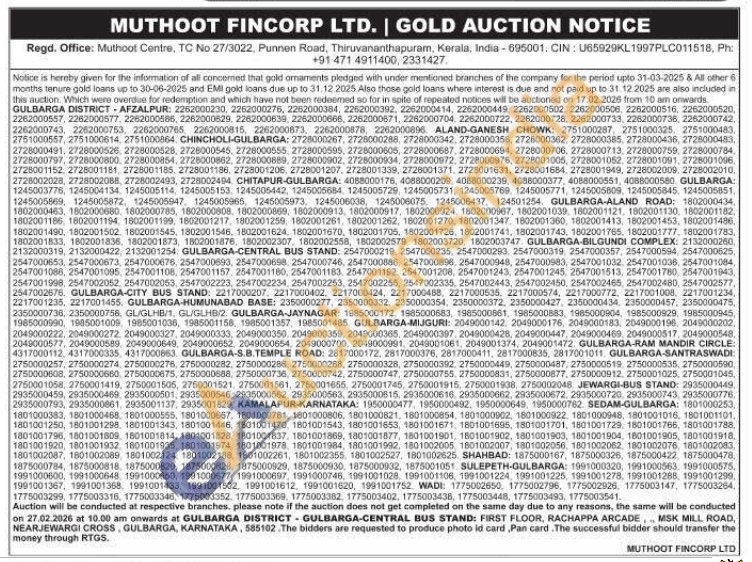 Muthoot Fincorp Ltd Gold Auctions Auction in Gulbarga