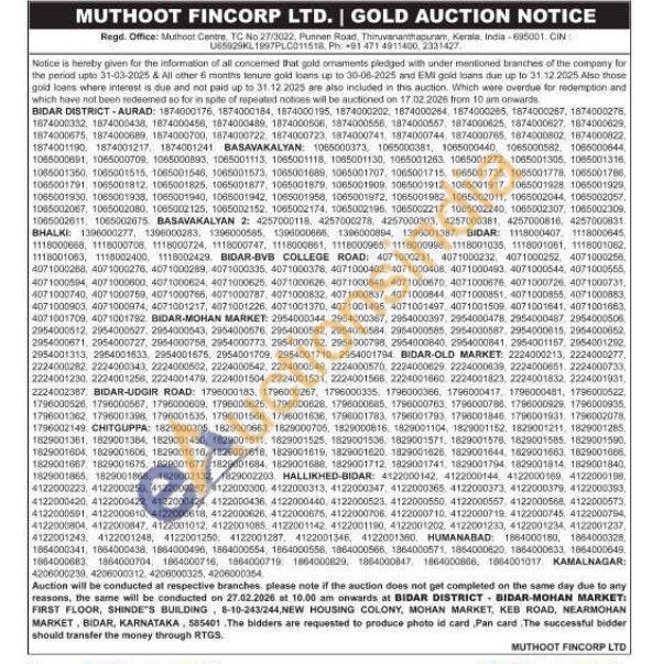 Muthoot Fincorp Ltd Gold Auctions Auction in Bidar