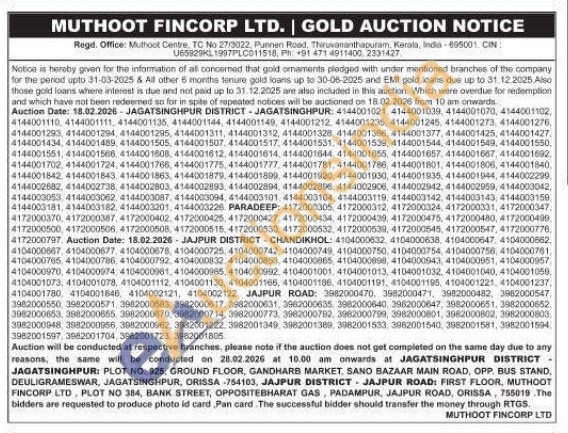 Muthoot Fincorp Ltd Gold Auctions Auction in Jagatsinghpur