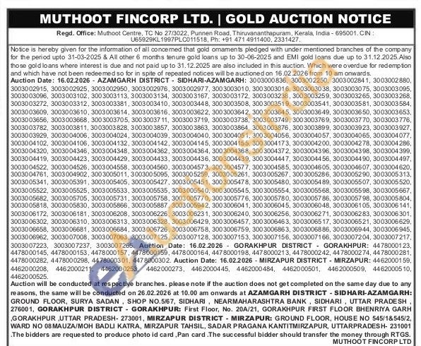 Muthoot Fincorp Ltd Gold Auctions Auction in Azamgarh
