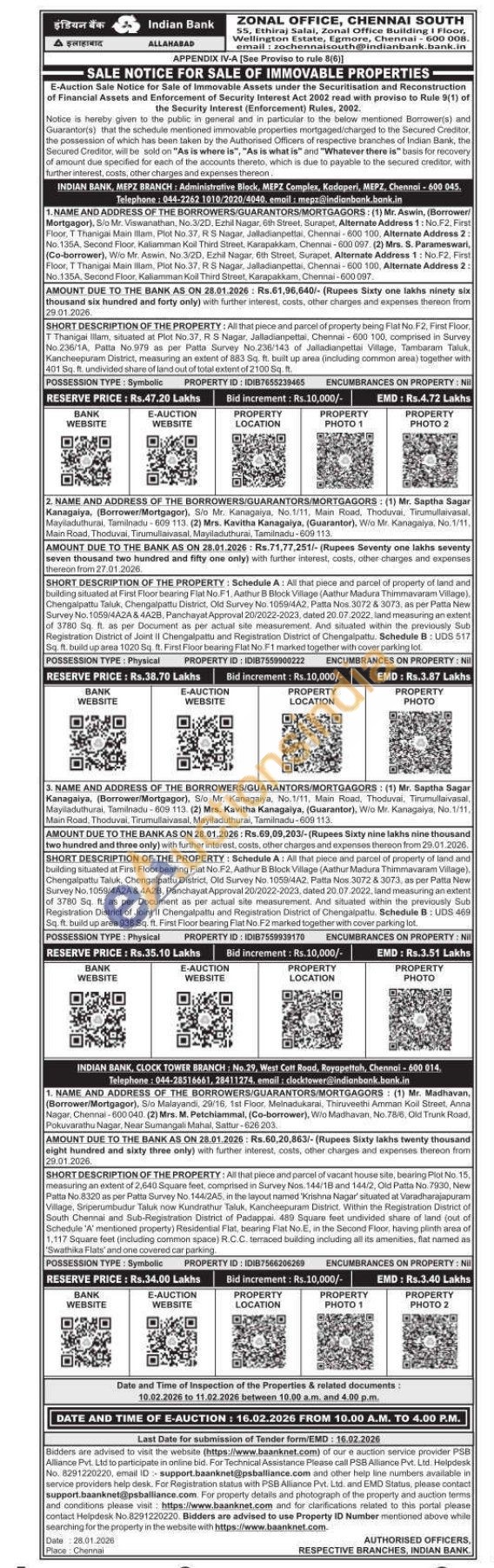 4) All that piece and parcel of vacant house site, bearing Plot No. 15, measuring an extent of 2,640 Square feet, comprised in Survey Nos. 144/18 and 144/2, Old Patta No. 7930, New Patta No 8320 as per Patta Survey No. 144/2A5, in the layout named "Krishna Nagar' situated at Varadharajapuram Village, Sriperumbudur Taluk now Kundrathur Taluk, Kancheepuram District. Within the Registration District of South Chennai and Sub-Registration District of Padappai. 489 Square feet undivided share of land (out of Schedule 'A' mentioned property) Residential Flat, bearing Flat No.E, in the Second Floor, having plinth area of 1,117 Square feet (including common space) R.C.C. terraced building including all its amenities, flat named as 'Swathika Flats' and one covered car parking.
