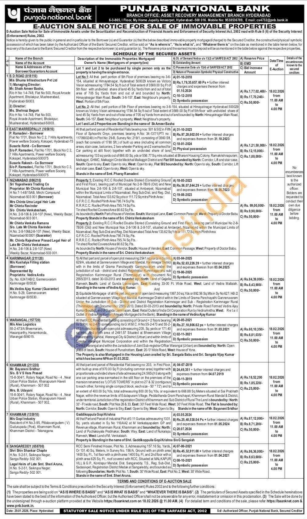 Property 1: Existing R.C.C Roofed Double Storied (Consisting Ground and First Floor), bearing part of Municipal No 2-8-780/6 (Old) and New Municipal Nos 2-8-106 & 2-8-107, situated at Amberpet, Nizamabad within the Municipal Limits of Nizamabad, Reg Sub-Dist and Reg. Dist. Nizamabad. Total Area 133.62 Sq ydsor 111.72 Sqmtrs Plinth Area: G.F.R.C.C. Roofed Plinth Area 795.74 Sq Fts. R.R.R.C.C. Roofed Plinth Area 795.74 Sq Fts. Tin shed Roofed Covered Area 90.62 Sq Fts