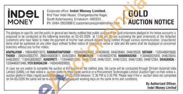 Indel money ltd Gold Auctions Auction in Ramanathapuram