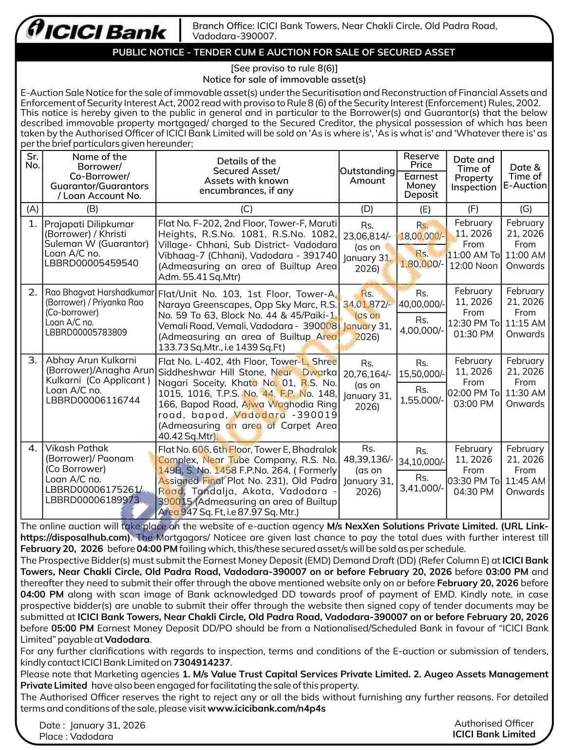 Flat/Unit No. 103, 1st Floor, Tower-A, Naraya Greenscapes. Opp Sky Marc, R.S. No. 59 Το 63, Block No. 44 & 45/Paiki-1, Vemali Road, Vemali, Vadodara 390008 (Admeasuring an area of Builtup Area 133.73 Sq.Mtr., i.e 1439 Sq.Ft)