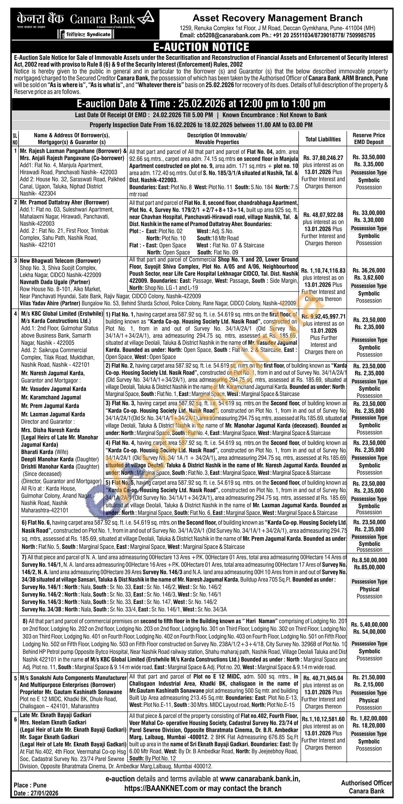Contact Email: cb5208@canarabank.com Ph.: +91 20 25511034/8739018778/7509985705