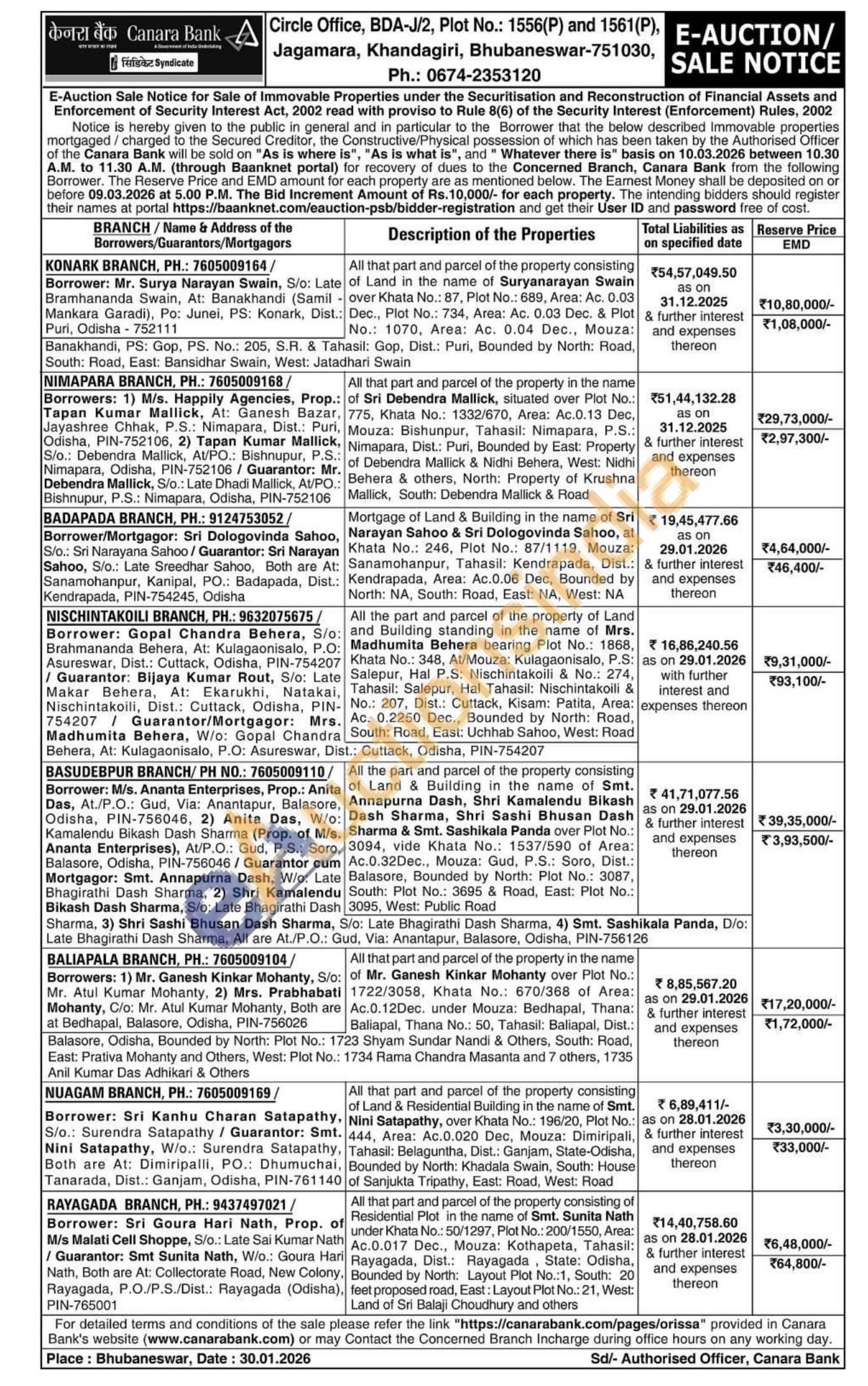 All that part and parcel of the property consisting of Residential Plot in the name of Smt. Sunita Nath under Khata No.: 50/1297, Plot No.: 200/1550, Area: Ac.0.017 Dec., Mouza: Kothapeta, Tahasil: Rayagada, Dist.: Rayagada, State: Odisha, Bounded by North: Layout Plot No.:1, South: 20 feet proposed road, East: Layout Plot No.: 21, West: Land of Sri Balaji Choudhury and others