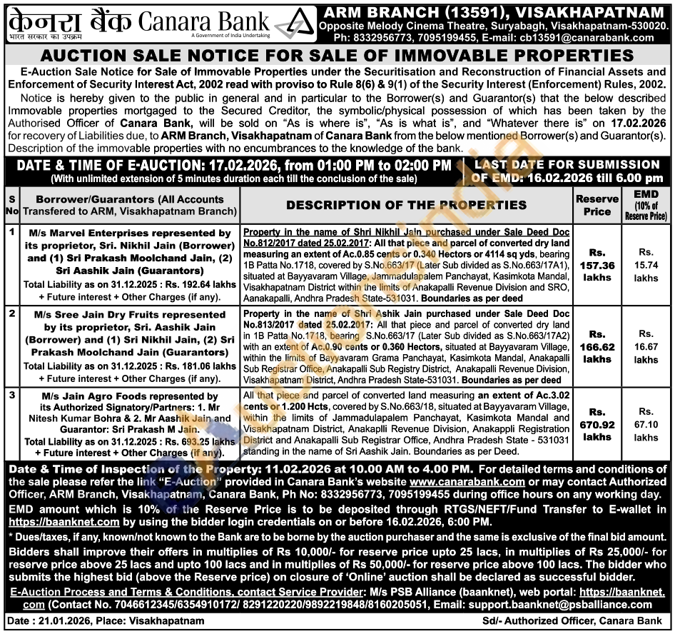 All that piece and parcel of converted land measuring an extent of Ac.3.02 cents or 1.200 Hcts, covered by S.No.663/18, situated at Bayyavaram Village, within the limits of Jammadulapalem Panchayat, Kasimkota Mandal and Visakhapatnam District, Anakaplli Revenue Division, Anakappli Registration District and Anakapalli Sub Registrar Office, Andhra Pradesh State - 531031 standing in the name of Sri Aashik Jain. Boundaries as per Deed.