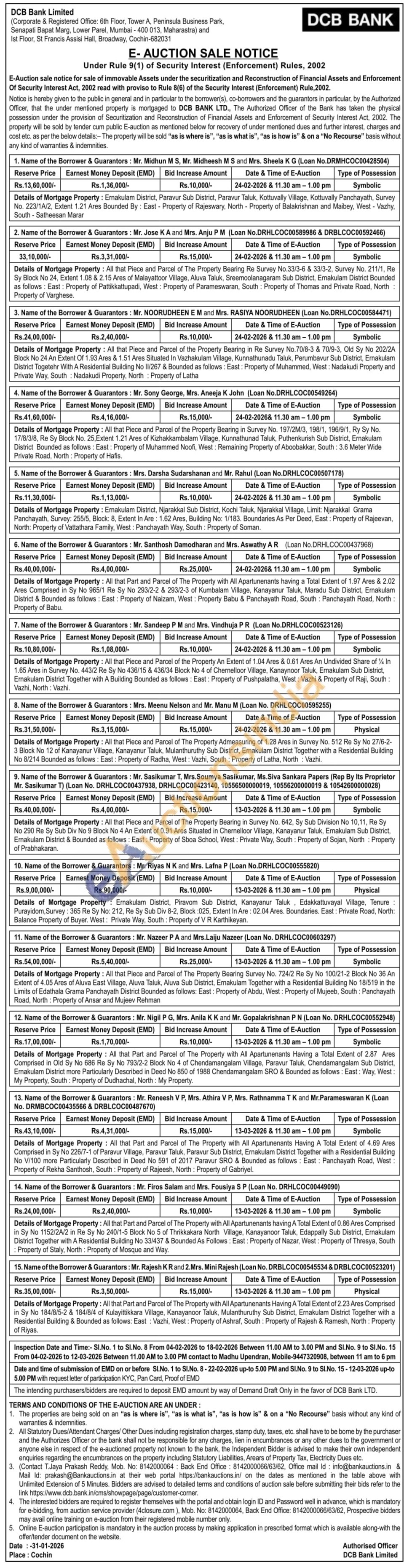 Details of Mortgage Property: All that Part and Parcel of The Property with All Apartunenants Having a Total Extent of 2.87 Ares Comprised in Old Sy No 686 Re Sy No 793/2-2 Block No 4 of Chendamangalam Village, Paravur Taluk, Chendamangalam Sub District, Emakulam District more Particularly Described in Deed No 850 of 1988 Chendamangalam SRO & Bounded as follows: East: Way, West: My Property, South: Property of Dudhachal, North: My Property.