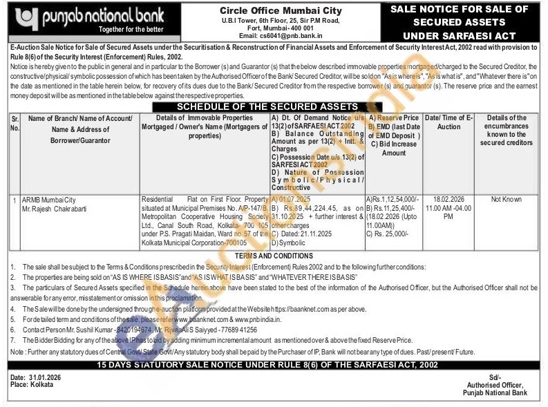 Residential Flat on First Floor. Property situated at Municipal Premises No. A/P-147Metropolitan Cooperative Housing SocietyLtd., Canal South Road, Kolkata-700 105 under P.S. Pragati Maidan, Ward no. 57 of the Kolkata Municipal Corporation-700105