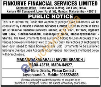 FINKURVE FINANCIAL SERVICES LIMITED Gold Auctions Auction in Bengaluru