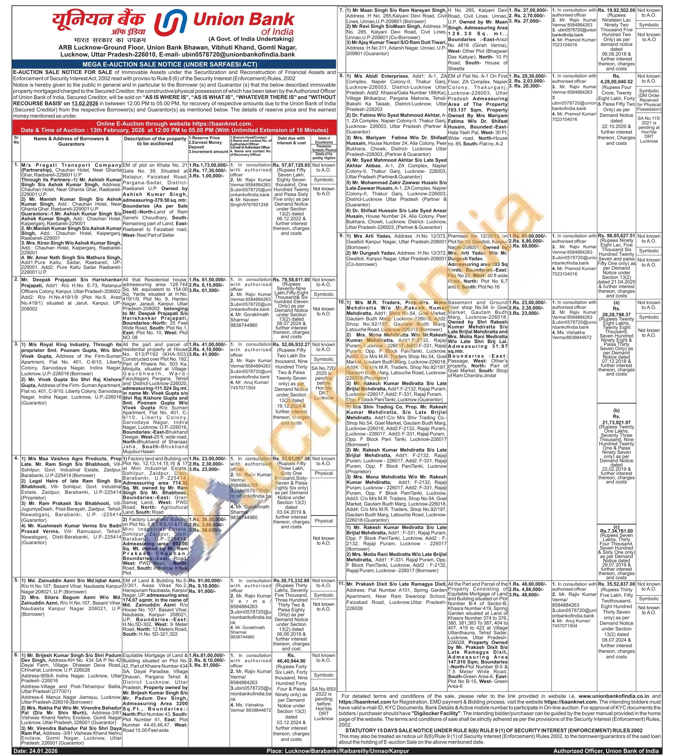 Factory Land and Building on Plot No. 5,6,7,8,9,10 &11 at Mini Industrial Estate. Sohilpur, Zaidpur, Distt-Barabanki, U.P.-225414. Admeasuring area 892.00 Sq. Mt. owned by Mr. Ram Prakash Chauhan. Boundaries:-East: Road, West: PWD Road, North: Road, South: Industrial estate Plot