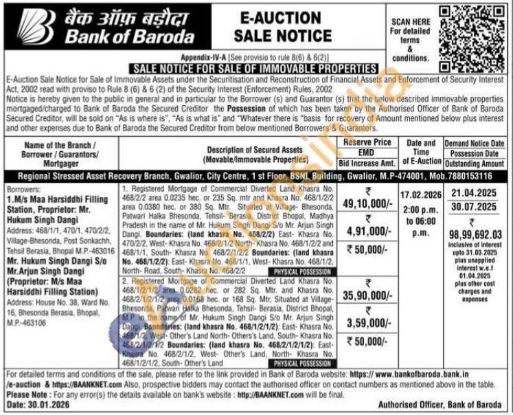 2. Registered Mortgage of Commercial Diverted Land Khasra No. 468/1/2/1/2 area 0.0282 hec or 282 Sq. Mtr. and Khasra No. 468/2/1/2/1/2 area 0.0168 hec. or 168 Sq. Mtr, Situated at Village-Bhesonda, Patwari Halka Bhesonda, Tehsil- Berasia, District Bhopal, M.P. in the name of Mr. Hukum Singh Dangi S/o Mr. Arjun Singh Dangi. Boundaries: (land khasra No. 468/1/2/1/2): East- Khasra No. 468/1/2, West-Other's Land North-Others's Land, South- Khasra No. 468/2/1/2/1/2 Boundaries: (land khasra No. 468/2/1/2/1/2): East-Khasra No. 468/2/1/2, West Other's Land, North- Khasra No. 468/1/2/1/2, South- Other's Land