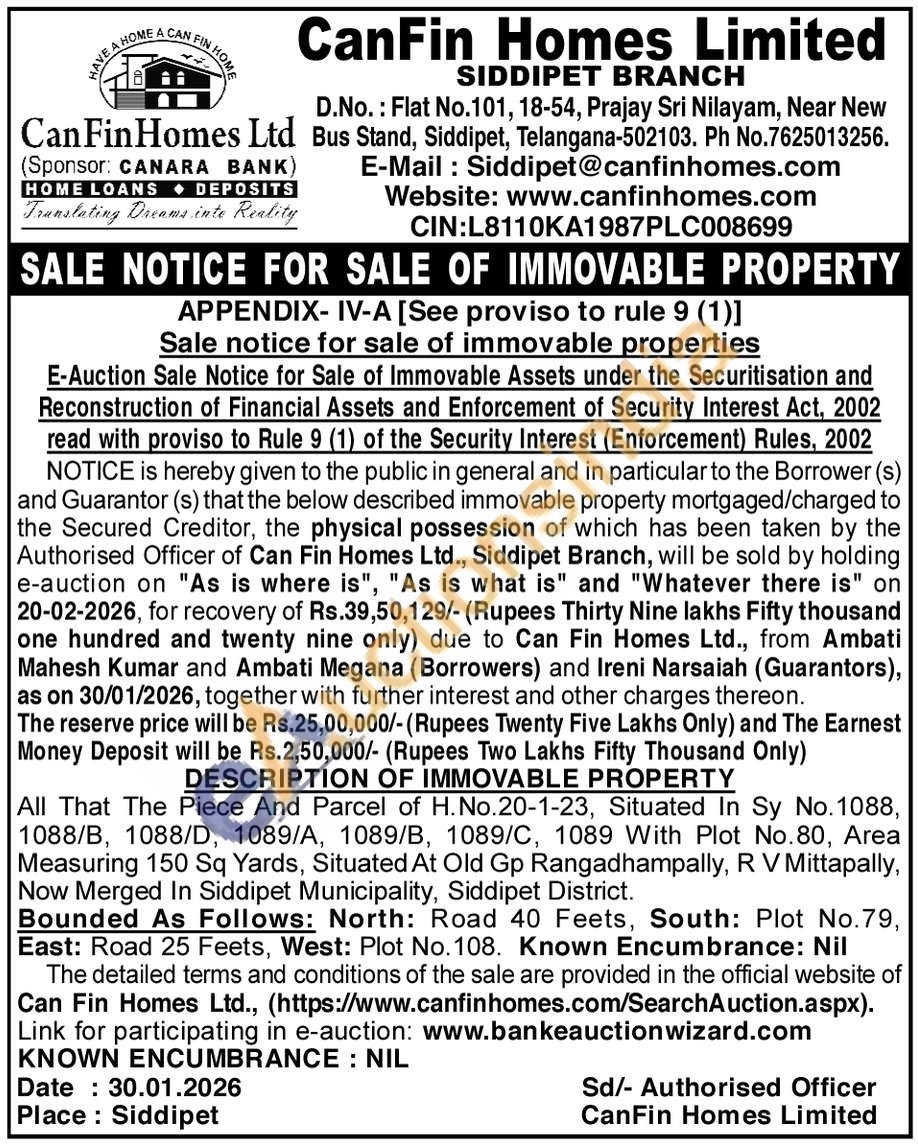 All That The Piece And Parcel of H.No.20-1-23, Situated In Sy No. 1088, 1088/B, 1088/D, 1089/A, 1089/B, 1089/C, 1089 With Plot No.80, Area Measuring 150 Sq Yards, Situated At Old Gp Rangadhampally, RV Mittapally, Now Merged In Siddipet Municipality, Siddipet District.